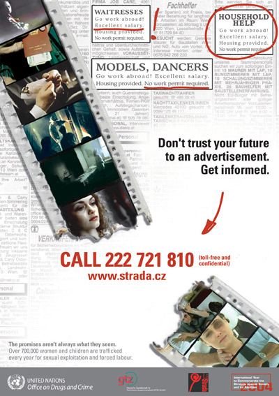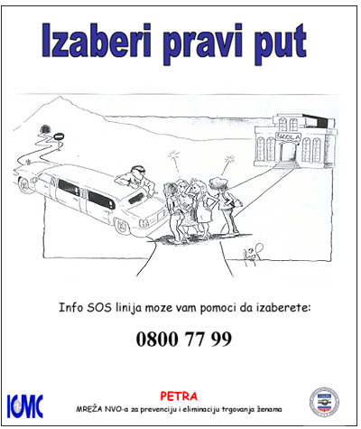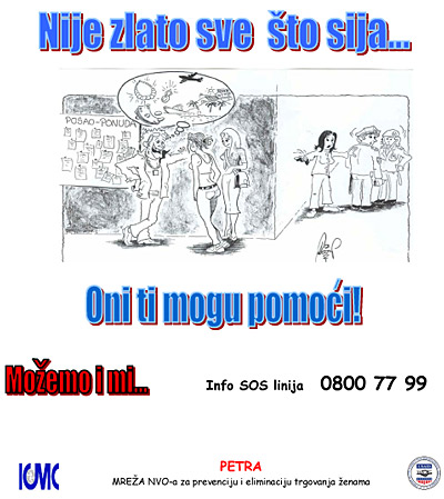 Kampanja "Otvori oči" prva kampanja financirana od ICMC sa četiri stripa "Izaberi pravi put”, "Nije zlato sve što sija", "Žene nisu na prodaju” i “Zaustavimo trgovanje ženama”